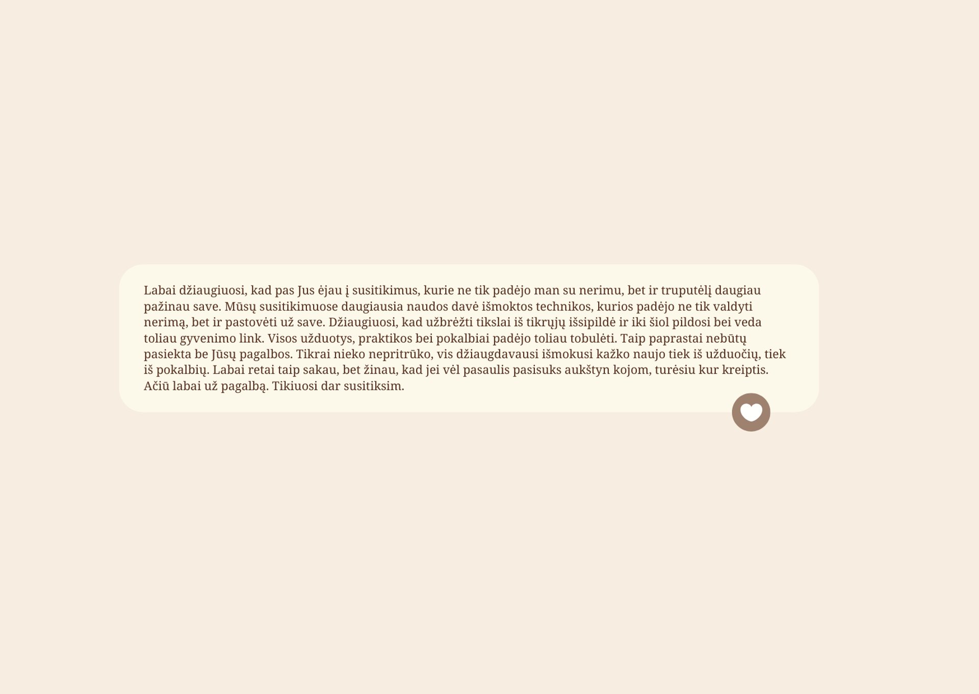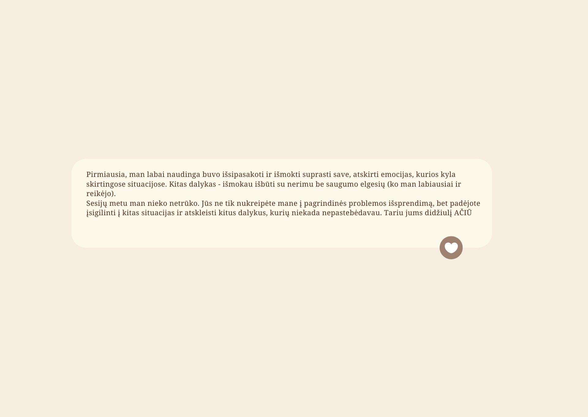 Siūlau saugų ir konfidencialų bendradarbiavimą, orientuotą į giluminį supratimą ir ilgalaikius pokyčius.